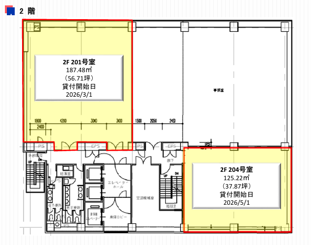 | 2階 | 56.71坪 | 2026年3月1日 | 相談 | 賃料に含む | - |