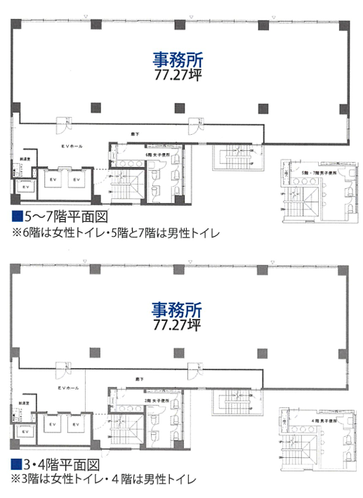| 備考 | 表示坪数は一括貸の総坪数になります。 各階:77.27坪 別途管理費:1000円/坪 |