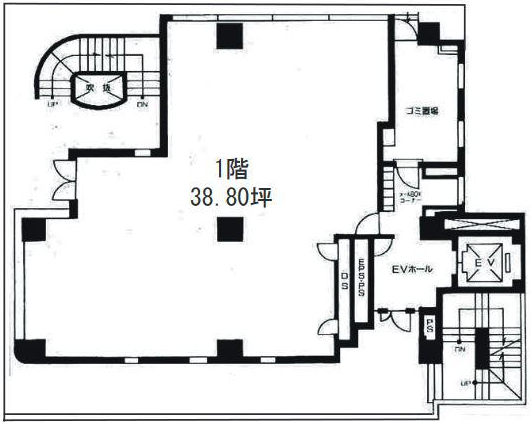 | 1階 | 38.8坪 | 2026年3月1日 | 34,000円/坪 | 1,289円/坪 | 1,319,200円/月 |