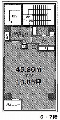 | 階数 | 6階 | 面積 | 13.85坪(45.79m²) |